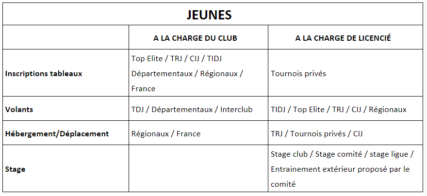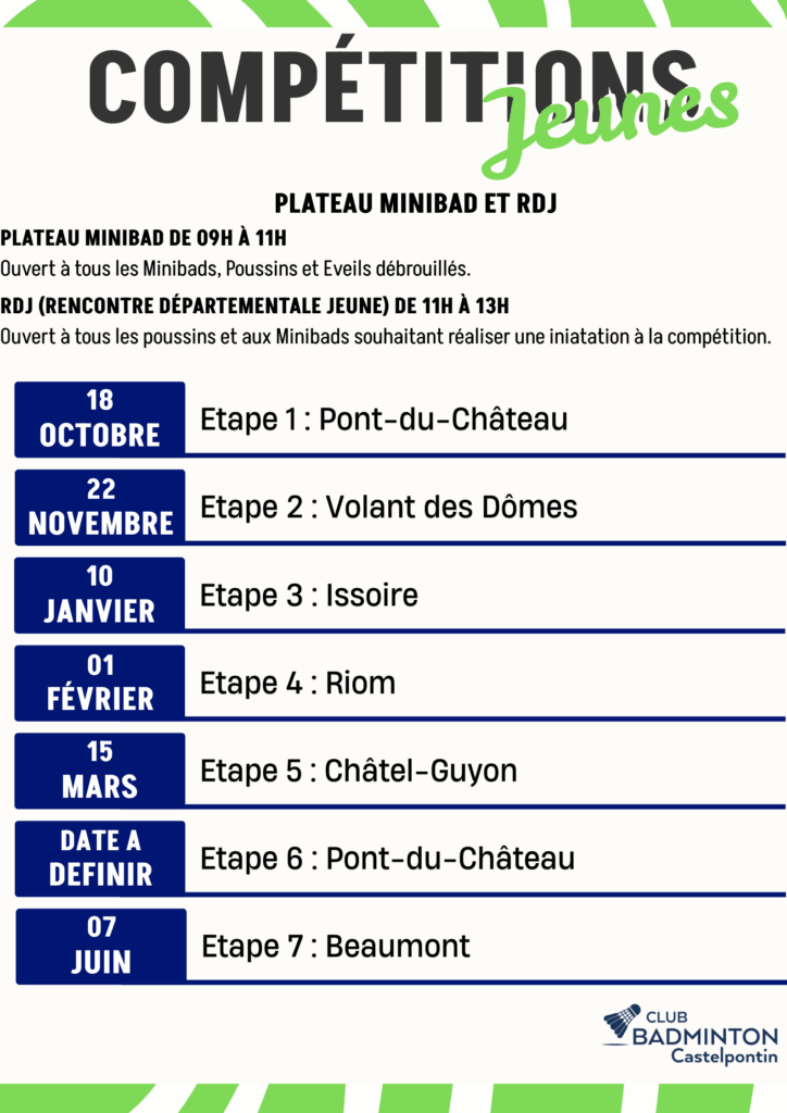 - Possibilité de créer une section MiniBad (accueil des moins de 9 ans).